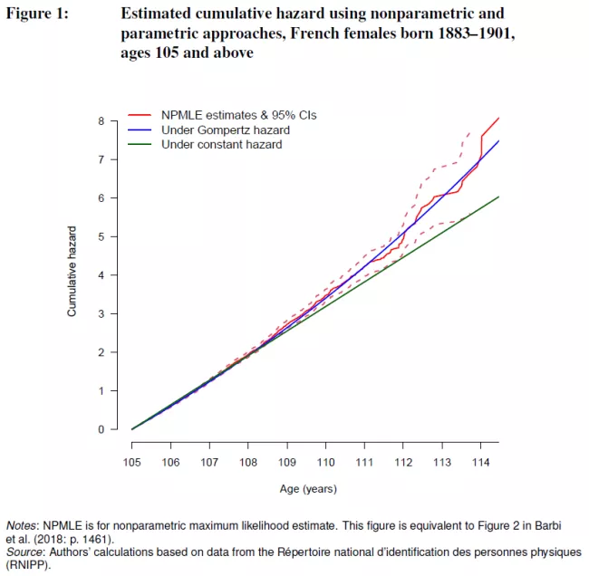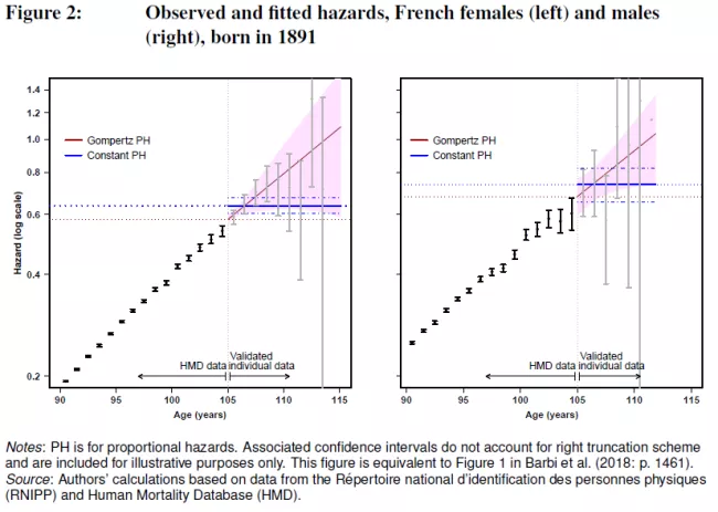 In 2016, geneticists published an article in Nature suggesting that the limit of human longevity was approximately 115 years (Dong et al. 2016). Two years later, in 2018, demographers using Italian data suggested the opposite in Science: no formal limits to the human lifespan (Barbi et al. 2018). Their study found essentially constant mortality rates beyond the age of 105, which led them to claim that a “mortality plateau” existed for human beings beyond that age (Figure 1). The existence of such a plateau meant, according to those authors, that after 105 years of life, mortality rates ceased being dependent on age and remained the same regardless of age. This in turn would seem to imply that there were no strict limits on human longevity, as the highest observed age values would depend only on the number of people reaching the plateau age.