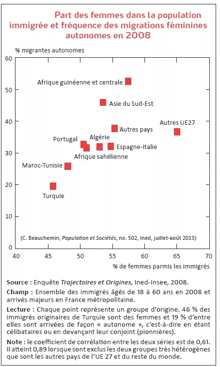 Source : Cris Beauchemin, Catherine Borrel, Corinne Régnard, «Immigrants in France: a female majority», Ined, Population and Societies n° 502, July-August 2013