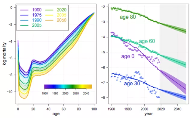 answered questions on their development of a new mortality projections model. Camarda and Basellini used the Lee-Carter model, which dates from 1992 and is the reference for modeling mortality and life expectancy projections, to design a three-component model.
