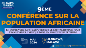 La 9ème Conférence sur la population africaine se tiendra du 20 au 24 mai 2024 et sera accueillie à Lilongwe par le gouvernement du Malawi. Le thème de la conférence sera : "En route vers 2030 : s’appuyer sur le capital humain pour transformer l’Afrique dans un monde d’incertitude".