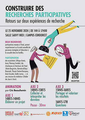 Dans chacun des axes, les apports, enjeux et limites des recherches participatives seront abordés à partir d'un retour sur deux recherches participatives menées à l'Ined portant respectivement sur la santé sexuelle des immigrés et l'éducation à la sexualité dans les familles.