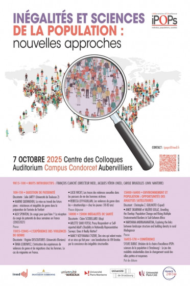 Le laboratoire d’excellence Individus, Populations, Sociétés (iPOPs) est au cœur de la recherche et de la formation en sciences de la population. Le Labex est porté par l’Ined en partenariat avec l’Université Paris I Panthéon-Sorbonne, l’Université de Bordeaux, l’Université de Paris Nanterre, l’Université de Strasbourg et l’Université Paris Cité. Lancé en 2011, il a été prolongé en 2019.