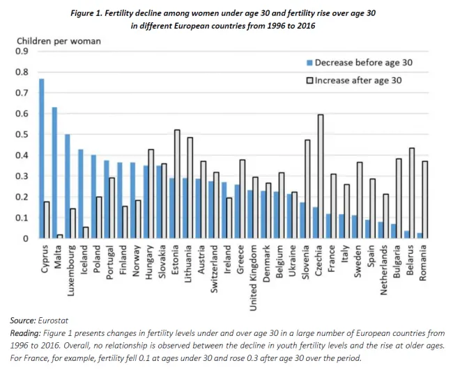 In countries where it is particularly hard to reconcile family and work lives we find both fewer working women and fewer children, as women there have to choose between working and raising young children. In countries where it is easier to balance work and family, mothers more often have a job and working women have more children. At the country level, then, context effects dominate individual constraints, notably biological ones. A greater part of the fertility trends of various European countries are explained by policies that make it possible to have children relatively late, such as measures facilitating work-family life balance, than to youth fertility decline or biological reproductive constraints. This is why family policy and immediate economic conditions play such an important role in fertility levels.
