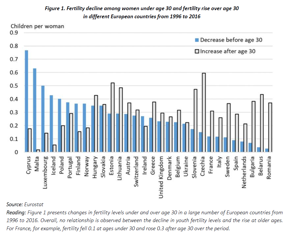 Eva Beaujouan et Laurent Toulemon, 2021, European countries with delayed childbearing are not those with lower fertility, Genus 77: 1-15.
