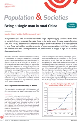 Those who are single in rural China are almost exclusively men. The presence of excess men in the population combines with internal migration and women’s quest for upward social mobility through marriage to explain this phenomenon. The DefiChine survey sheds light on the situation of single men in three rural districts of Shaanxi. One of its findings is that, although the shortage of women does create competition between men looking for a wife, the social and economic dimensions of male singlehood cannot be ignored.