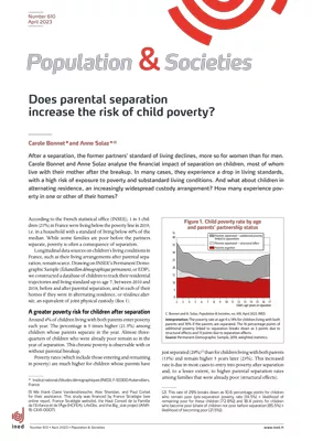 After a separation, the former partners’ standard of living declines, more so for women than for men. Carole Bonnet and Anne Solaz analyse the financial impact of separation on children, most of whom live with their mother after the breakup. In many cases, they experience a drop in living standards, with a high risk of exposure to poverty and substandard living conditions. And what about children in alternating residence, an increasingly widespread custody arrangement? How many experience poverty in one or other of their homes?1