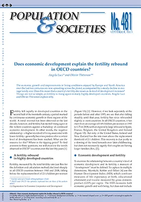 Fertility fell rapidly in OECD countries in the second half of the twentieth century, a period marked by continuous economic growth in these regions of the world. A trend reversal has been observed in the last decade, however, and fertility hasstarted rising again in the most developed countries against a backdrop of continued economic development. It would seem that there is no simple relationship between economic development and fertility. The trends observed in the thirty OECD countries between 1960 and 2007 show that the relationshipbetween gross domestic product (GDP) per capita and fertility,initially negative (a higher GDP is associated with lower fertility) generally turns positive once a certain development threshold has been reached (fertility increases with GDP) but this is not the case in all countries. Decomposing GDPper capita into its various components - labour productivity, working hours and employment - reveals that the rise in GDP per capita is only associated with increased fertility wheneconomic growth is linked to increased female labour forceparticipation. Enhancing the compatibility between female employment and childbearing is certainly a key factor in raising fertility levels.