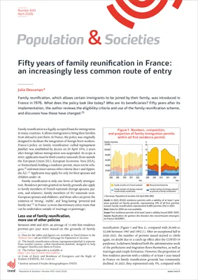 Family reunification, which allows certain immigrants to be joined by their family, was introduced in France in 1976. What does the policy look like today? Who are its beneficiaries? Fifty years after its implementation, the author reviews the eligibility criteria and use of the family reunification scheme, and discusses how these have changed.1