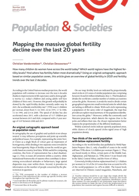 How many children do women have across the world today? Which world regions have the highest fertility levels? And where has fertility fallen most dramatically? Using an original cartographic approach based on similar population zones, this article gives an overview of global fertility in 2021 and fertility trends over the last 2 decades.