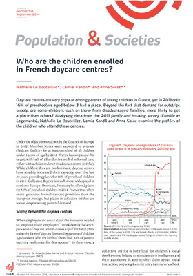 Children born early in the year are more likely to get a place in collective daycare than those born in the autumn. Places are allocated equally, however to boys and girls, and to children of biological or adoptive parents. Third children more frequently get a place in collective daycare than first or second children, the aim being to help mothers with large families who wish to stay in work. Likewise, twins and triplets are more likely to have a place than singletons. Children of unemployed mothers are over-represented, while children from lone-parent families do not appear to take priority, despite a policy to favour their enrolment.