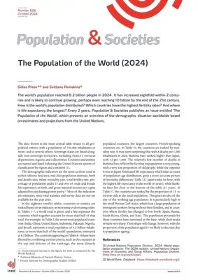 The world’s population reached 8.2 billion people in 2024. It has increased eightfold within 2 centuries and is likely to continue growing, perhaps even reaching 10 billion by the end of the 21st century. How is the world’s population distributed? Which countries have the highest fertility rates? And where is life expectancy the longest? Every 2 years, Population & Societies publishes an issue entitled ‘The Population of the World’, which presents an overview of the demographic situation worldwide based on estimates and projections from the United Nations.