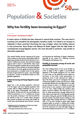 After declining slowly to 3 children per woman on average in the mid-2000s, fertility in Egypt has risen back to 3.5 children in recent years. Women are marrying earlier and more frequently. They also bear their children at younger ages. Some argue that this reflects an increase in religiosity. The labour market difficulties of Egyptian women, the most educated especially, provide a more convincing explanation. Faced with a lack of job opportunities and a slack labour market, women may be deciding to marry and have children earlier than previous cohorts, though without wishing to have larger families. If this is the case, the number of births should fall when these women have reached their desired family size.