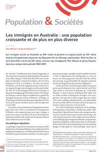 En Australie, l’immigration joue depuis longtemps un rôle important en façonnant la démographie, l’économie et la culture du pays. À la fin de la Seconde Guerre mondiale, les immigrés étaient 0,75 million, soit 10 % de la population totale. En 2016, ils étaient 6,9 millions, soit 28 % de la population. Les régions d’origine ont elles aussi évolué. Jusqu’à la fin des années 1970, les immigrés étaient majoritairement nés en Europe. La part de l’Europe a ensuite baissé sensiblement au profit des immigrés provenant d’Asie, d’Océanie, d’Afrique et d’Amérique du Nord et du Sud.