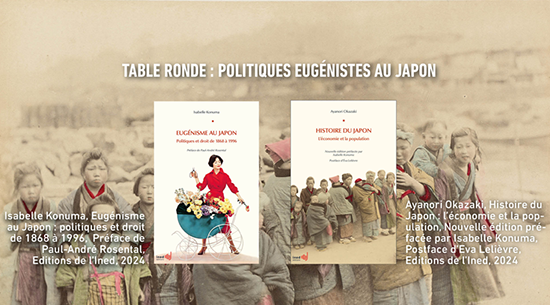 La table ronde sera consacrée à la présentation de deux ouvrages : "Histoire du Japon: l’économie et la population", d’Okasaki Ayanori et "Eugénisme au Japon: politiques et droit de 1868 à 1996", d’Isabelle Konuma.