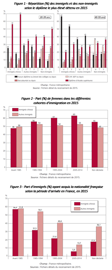 DONNÉES UTILISÉES L’article présenté se fonde sur les recensements de l’Insee pour présenter des données de cadrage concernant les différents sous-groupes qui forment la population issue de cette immigration, à savoir les personnes de nationalité chinoise, les immigrés nés en Chine et la fraction des descendants d’immigrés chinois repérables dans la statistique française. Il recourt à des données administratives (état civil, ministère de l’Intérieur) afin d’estimer l’ampleur des différents flux qui alimentent la croissance de la population chinoise en France. |