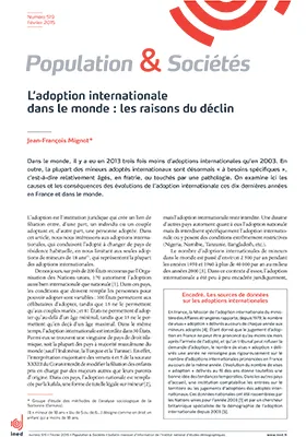 Il y a dix ans on comptait environ 40 000 adoptions internationales de mineurs dans le monde, très concentrées dans quelques pays d’origine (Chine et Russie) et quelques pays d’accueil (en premier lieu les États-Unis). Entre 2004 et 2013, le nombre d’adoptions internationales de mineurs a chuté des deux tiers, en France comme dans le monde entier. La pénurie de mineurs adoptables est due au déclin du nombre de mineurs orphelins ou abandonnés et à l’essor des adoptions nationales dans les pays d’origine, mais aussi à diverses mesures politiques qui cherchent à contrôler plus strictement l’adoption pour éradiquer le trafic d’enfants. La pénurie de mineurs adoptables laisse à l’adoption internationale des mineurs qui sont pour la plupart « à besoins spécifiques ».