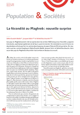La fécondité, après avoir convergé vers le seuil de remplacement dans les pays du Maghreb, y évolue aujourd'hui de façon contrastée. En Tunisie, la fécondité a cessé de baisser et semble rivée à 2,1 enfants par femme depuis 1999. En Algérie, après avoir atteint 2,2 dans la première moitié des années 2000, elle ne cesse d'augmenter depuis, atteignant presque 2,9 en 2010. Dans le même temps, au Maroc et en Libye, où le seuil de remplacement n'était pas encore atteint, elle a continué à baisser rapidement jusqu'à 2,2 et 2,5 respectivement. Non seulement aucun de ces pays n'est encore tombé sous le seuil de remplacement mais l'Algérie opère depuis dix ans une vive remontée. Comme hier pour la baisse de la fécondité, l'évolution de l'âge au mariage joue aujourd'hui le premier rôle dans sa stabilisation à 2 enfants par femme en Tunisie et dans la remontée à près de 3 en Algérie. Mais il se peut aussi que dans ce pays, le modèle à deux enfants ne soit plus aussi attractif.
