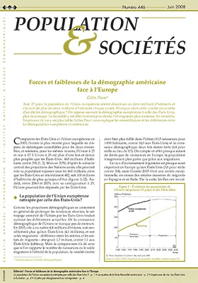 En 2005, l'Union européenne à 25 pays est plus d'une fois et demie plus peuplée que les États-Unis : 463 millions d'habitants contre 296. Mais sa population s'est accrue trois fois et demie moins vite au cours des vingt dernières années. La population américaine bénéficie en effet d'un accroissement migratoire substantiel se rajoutant à un accroissement naturel important, alors que la population européenne ne s'accroît plus guère que grâce à l'immigration. La forte croissance naturelle américaine tient en partie à une fécondité élevée : en 2005, 2,05 enfants en moyenne, contre 1,52 dans l'Union européenne. En revanche, les Américains vivent moins longtemps que les Européens, la différence d'espérance de vie étant particulièrement nette du côté féminin : 80,4 ans contre 82,0 ans.