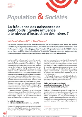 Moins une femme est diplômée, plus elle présente de risque de donner naissance à un enfant de petit poids (moins de 2,5 kg). Le risque est 50 % plus élevé pour les femmes sans aucun diplôme par rapport à celles ayant le bac. Les différences selon le niveau de diplôme se réduisent un peu lorsqu’on prend en compte le revenu du ménage, ainsi que des facteurs comme le rang de nais-sance de l’enfant, l’âge de la mère et la taille des parents, mais elles ne disparaissent pas. La consommation de tabac et d’alcool pendant la grossesse semble jouer un rôle, expliquant en partie la fréquence plus élevée des petits poids de naissance chez les enfants des femmes les moins instruites. Les variations socioéconomiques du risque de petit poids sont comparables en France et au Royaume-Uni.