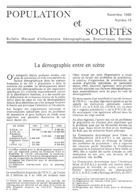 On enregistre depuis quelques années une prise de conscience du rôle considérable du facteur démographique dans les sciences humaines et du fait "population" dans la conduite des sociétés.