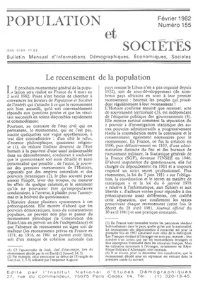 Le prochain recensement général de la population sera réalisé en France du 4 mars au 2 avril 1982.