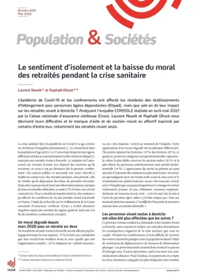 Confinés et très limités dans leurs relations sociales et leurs activités pendant la première année de la crise sanitaire, les pensionnés du régime général de retraite français sont plus de la moitié à indiquer une dégradation de leur moral suite à l’épidémie de Covid-19 et les confinements. Pour les retraités ayant indiqué avoir eu besoin d’aide, la demande de soutien moral ou affectif vient en premier. Par rapport aux retraités en couple, ceux vivant seuls ont davantage ressenti les conséquences de la politique sanitaire. Le moral des individus se distingue aussi selon le sexe, la santé, le niveau économique, et l’âge. Les personnes ayant le plus mal vécu les confinements se trouvent parmi les moins âgées et celles vivant seules.