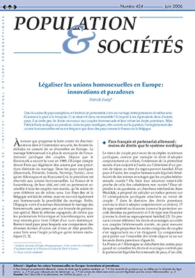 Une douzaine de pays européens ont institué le partenariat, voire le mariage, entre personnes de même sexe. Les droits accordés aux couples homosexuels enregistrés diffèrent d'un pays à l'autre, se rapprochant de ceux des couples hétérosexuels mariés dans les pays nordiques, aux Pays-Bas et en Belgique mais restant très inférieurs en France et en Allemagne. Curieusement, les pays nordiques, qui égalisent les droits pour tous les types de couples et dont les opinions publiques demeurent très ouvertes sur la question, enregistrent moins fréquemment les unions homosexuelles que des pays comme la France ou la Belgique. Sans doute parce que la légalisation des unions apporte le plus de droits nouveaux aux couples homosexuels dans ces derniers pays, alors qu'elle n'en ajoute guère dans les pays nordiques où les couples de fait jouissent déjà de droits importants.