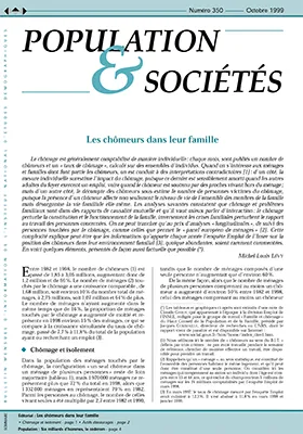 (*) Les tableaux et graphiques ci-après sont extraits d'une note de Claude Gissot, qui appartenait à l'époque à la division Emploi de l'Insee, rédigée pour le groupe de travail « Famille et chômage » du Haut Conseil de la Population et de la Famille, présidé par Jacques Commaille, directeur de recherches au CNRS, dont le rapport vient de paraître et est disponible sur Internet : http://www.social.gouv.fr/htm/home/index_titre1.htm