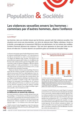 - [3] Marsicano É., Bajos N., Pousson J.-E. 2023. Violences sexuelles durant l’enfance et l’adolescence : des agressions familiales dont on parle peu. Population & Sociétés, 612. https://doi.org/10.3917/popsoc.612.0001