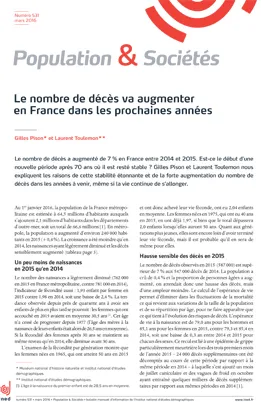 La population de la France a augmenté de plus de moitié depuis 70 ans et a vieilli, ce qui aurait dû entraîner une hausse du nombre annuel de décès. Deux facteurs expliquent qu’ils se soient maintenus à peu près constants au cours de cette période : l’augmentation de la durée de vie et l’arrivée aux grands âges des classes creuses nées pendant la Première Guerre mondiale. Leur extinction et l’arrivée à ces âges des générations nombreuses du baby-boom vont entraîner une hausse des décès dans les prochaines années.