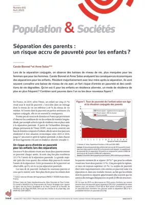 Environ 4 % des enfants vivant avec leurs deux parents entrent en pauvreté chaque année, ils sont cinq fois plus nombreux (21,5 %) l’année de la séparation parentale. La grande majorité (près des trois quarts) des enfants déjà pauvres le restent l’année de la séparation. Cette permanence de la pauvreté est observable, qu’il y ait eu ou pas séparation parentale.