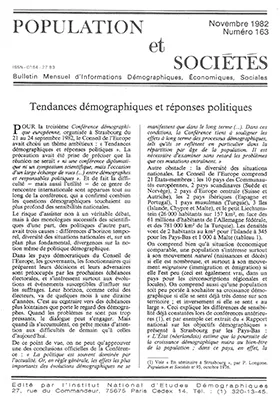 Pour la troisième conférence démographique européenne, organisée à Strasbourg du 21 au 24 septembre 1982, le Conseil de l'Europe avait choisi un thème ambitieux : "Tendances démographiques et réponses politiques".