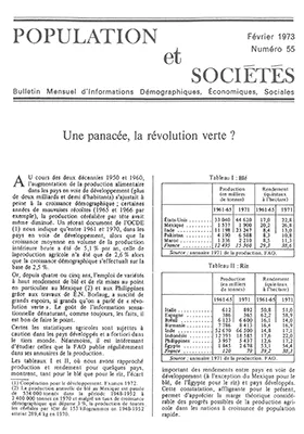 Au cours des deux décennies 1950 et 1960, l'augmentation de la production dans les pays en voie de développement s'ajustait à paine à la croissance démographique ; certaines années de mauvaises récoltes (1965 et 1966, par exemple), la production céréalière par tête avait même diminué.