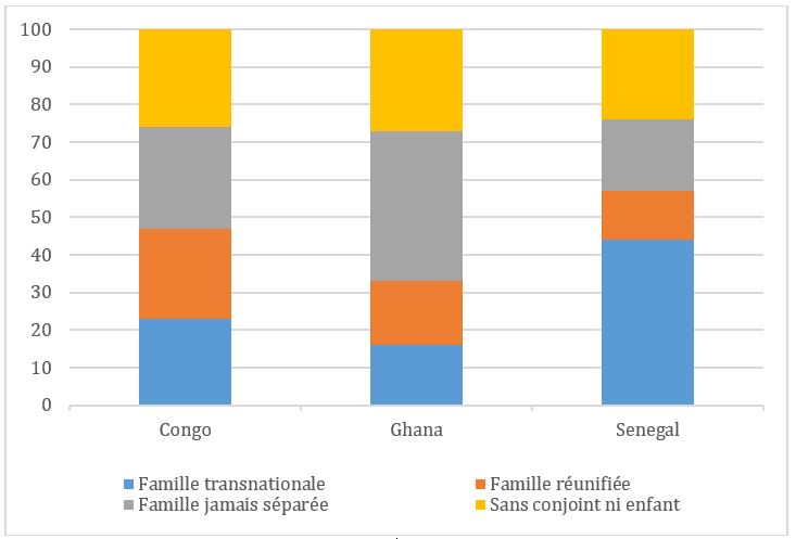 Source : Mazzucato V., Schans D., Caarls K., Beauchemin C. 2018. “Migrant Families Between Africa and Europe: Comparing Ghanaian, Congolese And Senegalese Migration Flows”, in: Beauchemin C. (ed.), Migration between Africa and Europe, Verlag Berlin Heidelberg New-York: Springer, p.149-188