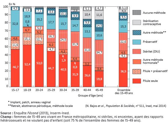 Méthodes de contraception utilisées en France en 2013 selon l’âge des femmes (Population & Sociétés, n°511, figure 2)