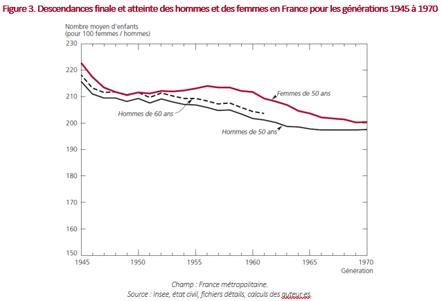 Source : Didier Breton, Nicolas Belliot, Magali Barbieri et al., 2023, L’évolution démographique récente de la France : Les comportements des femmes et des hommes sont-ils si différents ?, Population (édition française) 78: 1-68.