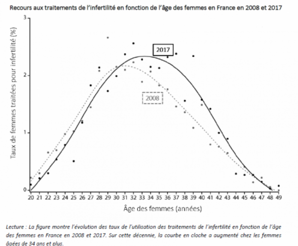 Khaoula Ben Messaoud, Jean Bouyer et Elise de La Rochebrochard, 2020, "Infertility Treatment in France, 2008–2017: A Challenge of Growing Treatment Needs at Older Ages", American Journal of Public Health 110: 1418-1420.